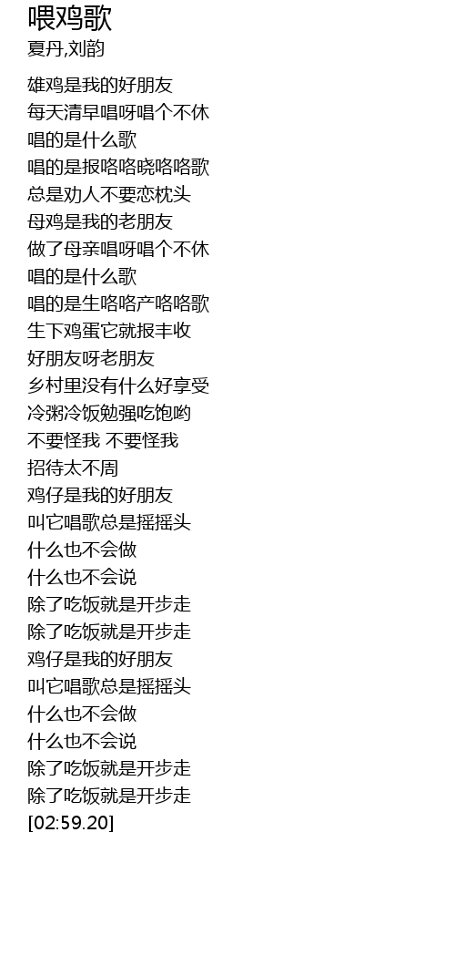 | [02:02.72] | 鸡仔是我的好朋友 |