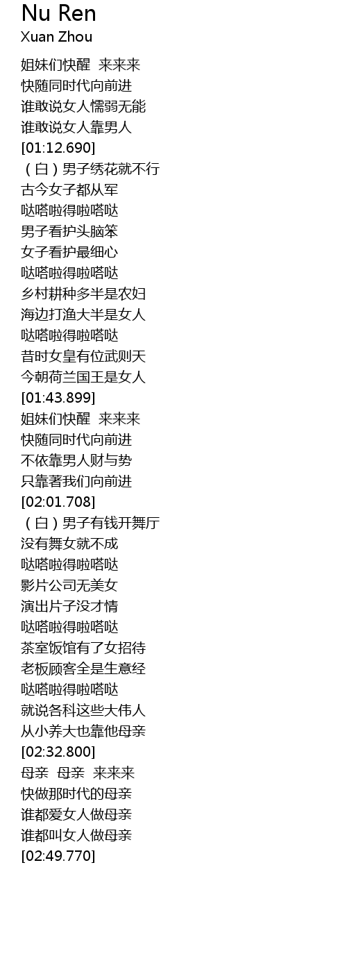 | [02:46.110] | shui dou jiao nv ren zuo mu qin |