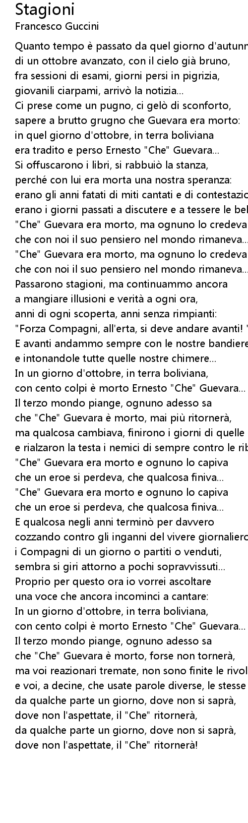 | che " Che" Guevara e morto, mai piu ritornera, | |