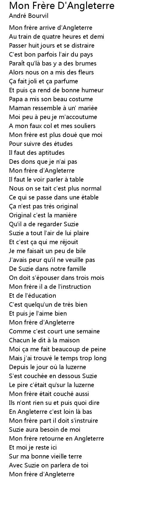 | Song | Mon Frère D'Angleterre |