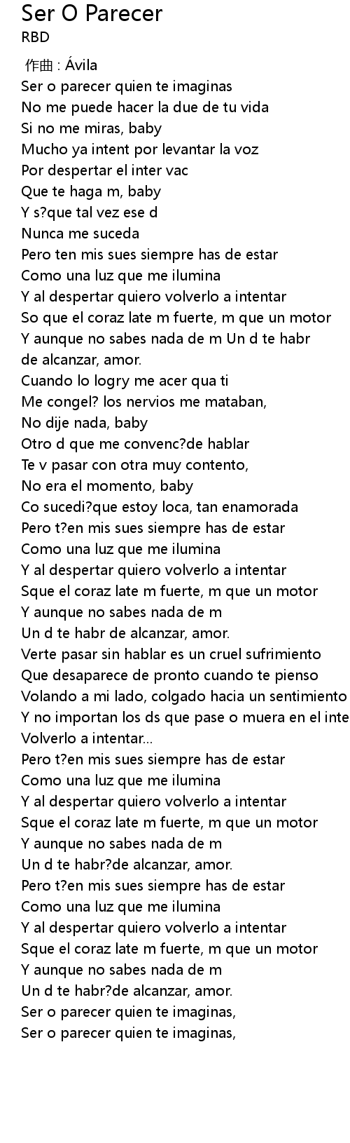 | [00:03.59] | Ser o parecer quien te imaginas |