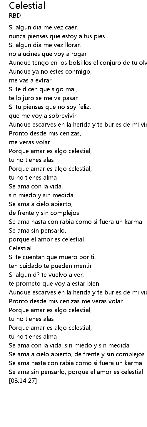 | [03:07.33] | Se ama sin pensarlo, porque el amor es celestial |