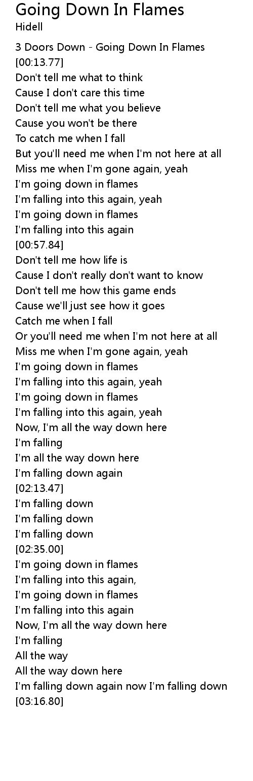 I'm going down in flames |