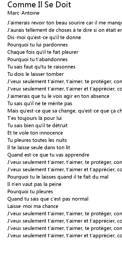 | Song | Comme Il Se Doit |