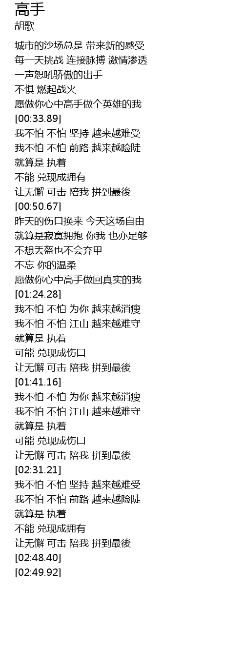 | [00:30.59] | 愿做你心中高手做个英雄的我 |