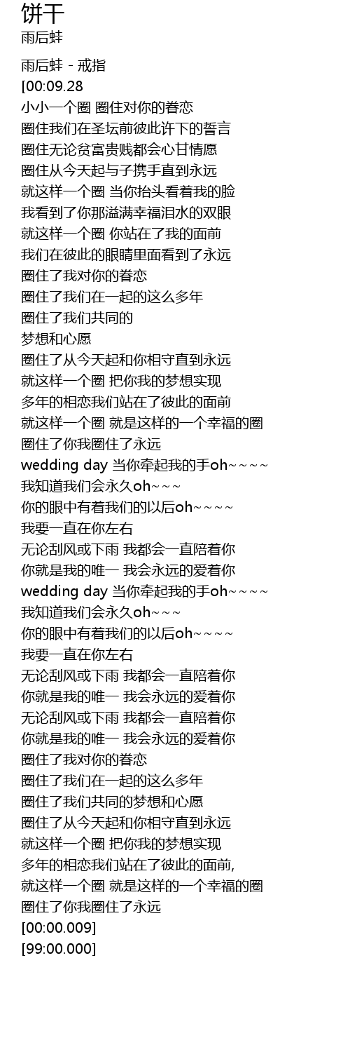 | [00:00.100] | 雨后蛙 - 戒指 |