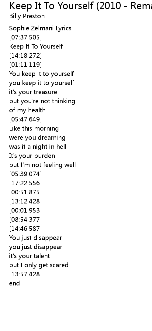 | Song | Keep It To Yourself (2010 - Remaster) |