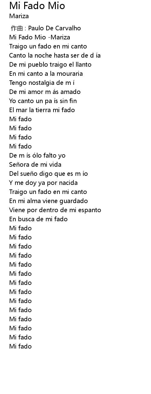 | [00:00.112] | Mi Fado Mio -Mariza |