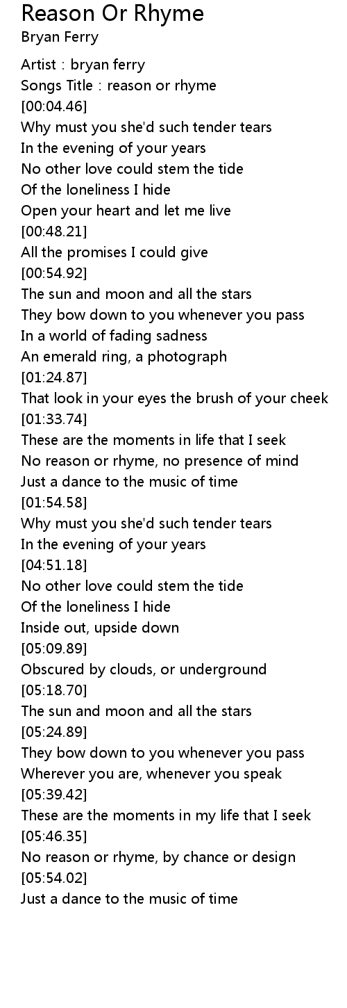 | [01:42.22] | No reason or rhyme, no presence of mind |