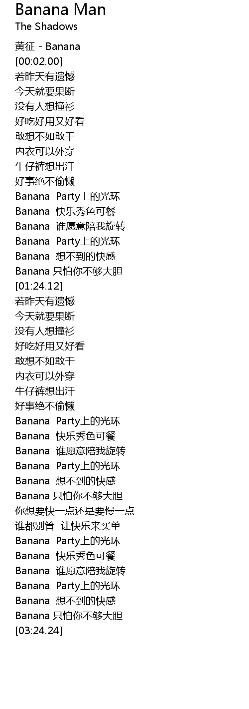 | [02:12.34] | Banana 快乐秀色可餐 |