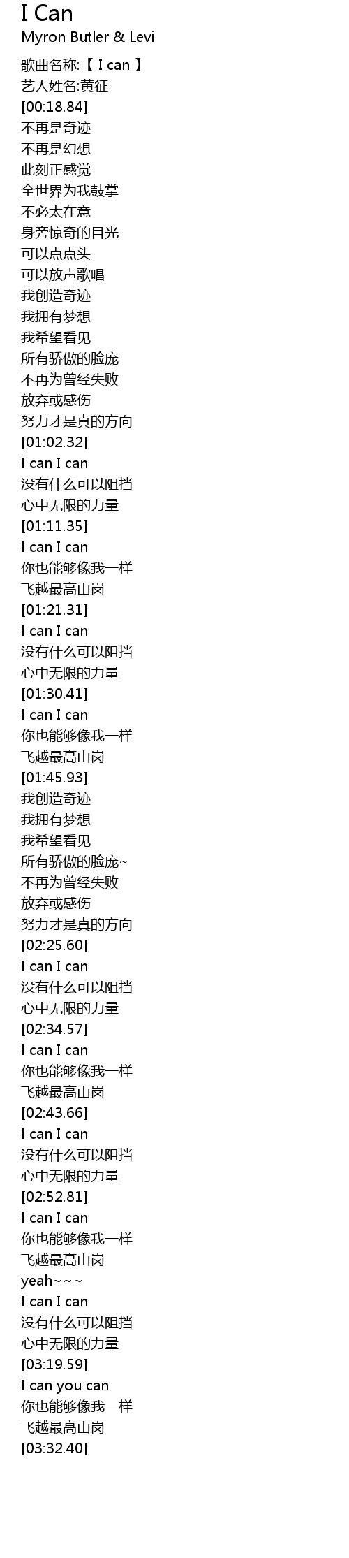 | [00:10.47] | 歌曲名称:【 I can 】 |