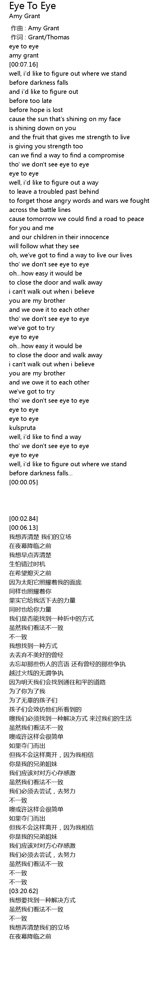 | [03:33.43] | eye to eye |