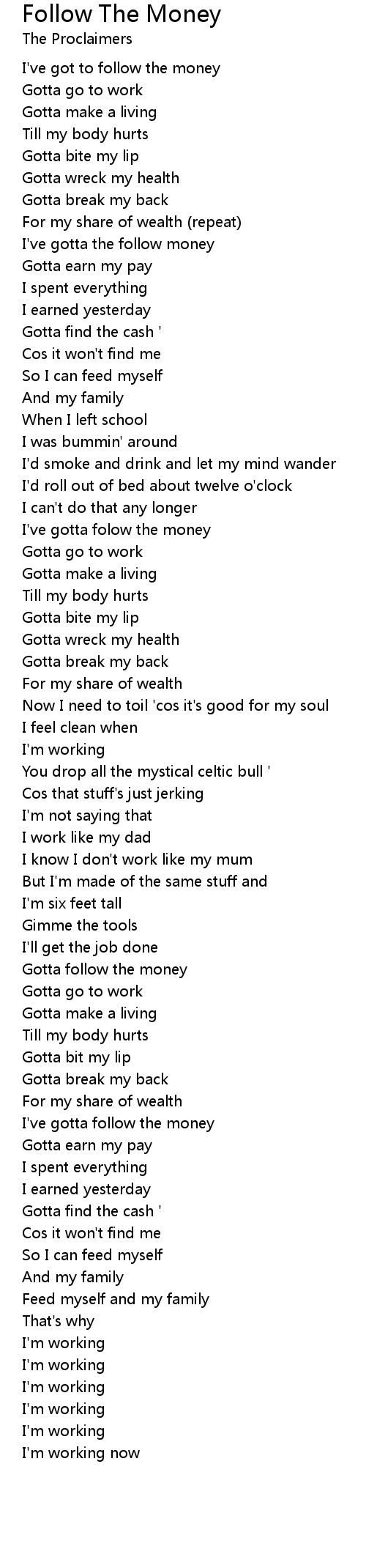 I've gotta the follow money |