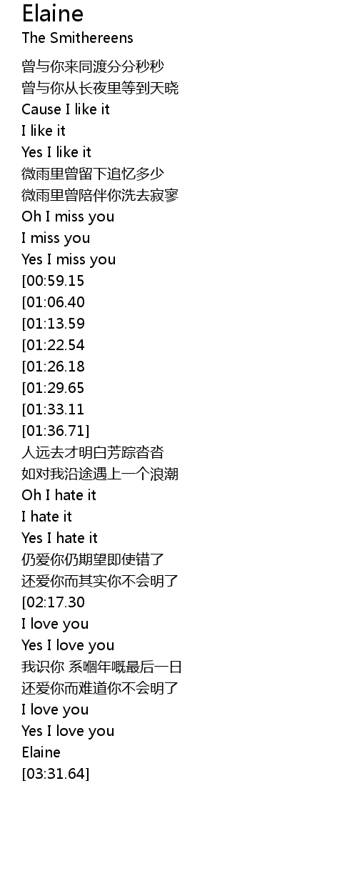 | [03:00.97][01:29.65] | Elaine |