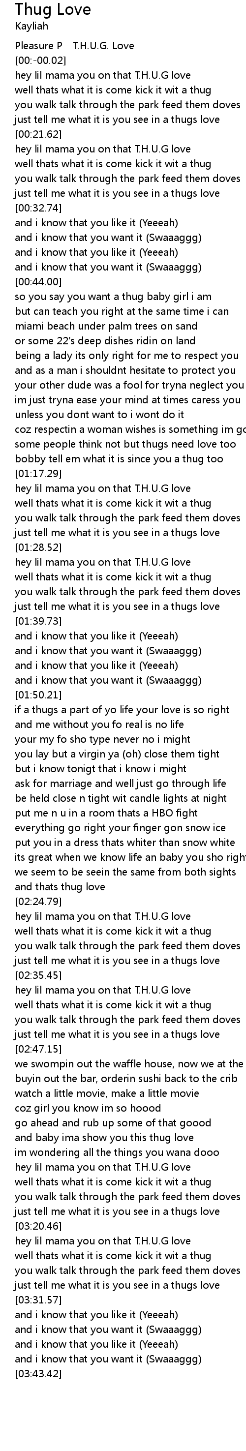 | [03:20.66] | hey lil mama you on that T.H.U.G love |