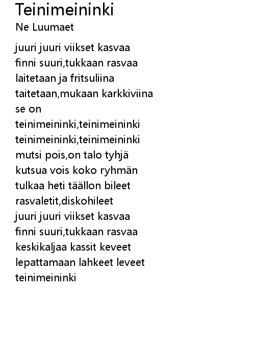 | Song | Teinimeininki |