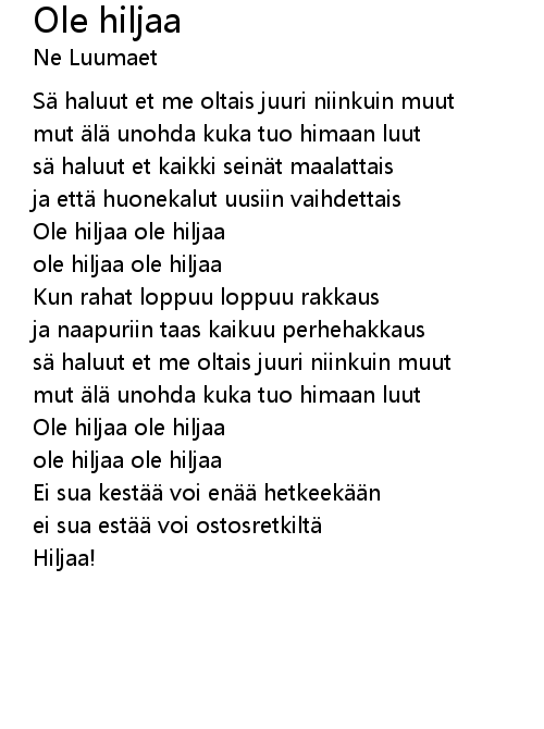 | ole hiljaa ole hiljaa | |