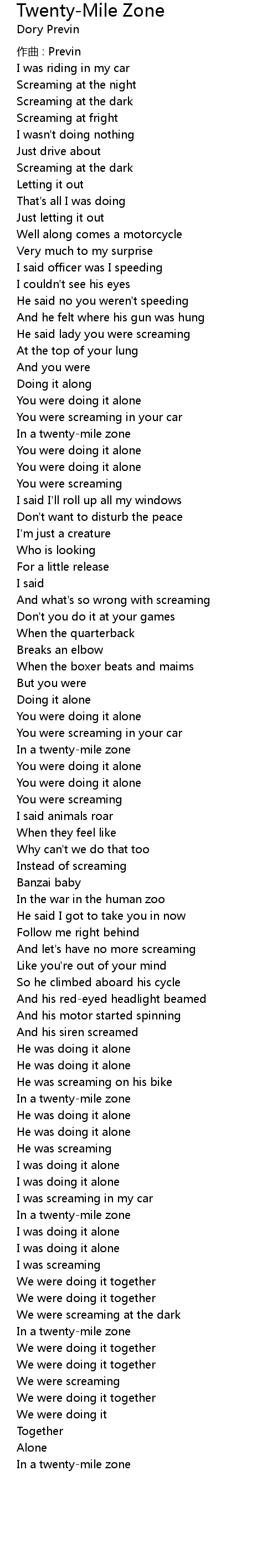 | Song | Twenty-Mile Zone |