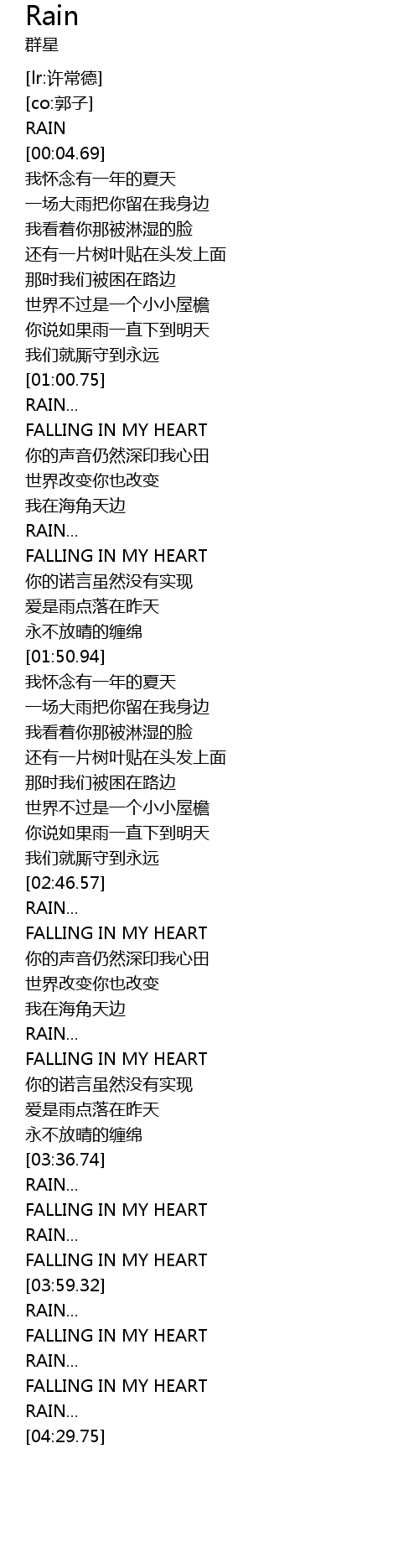 | [04:17.33] | FALLING IN MY HEART |