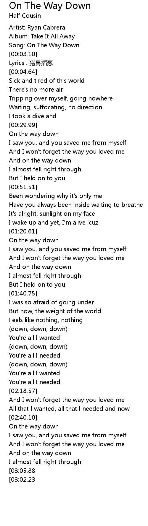 | [00:02.76] | Song: On The Way Down |