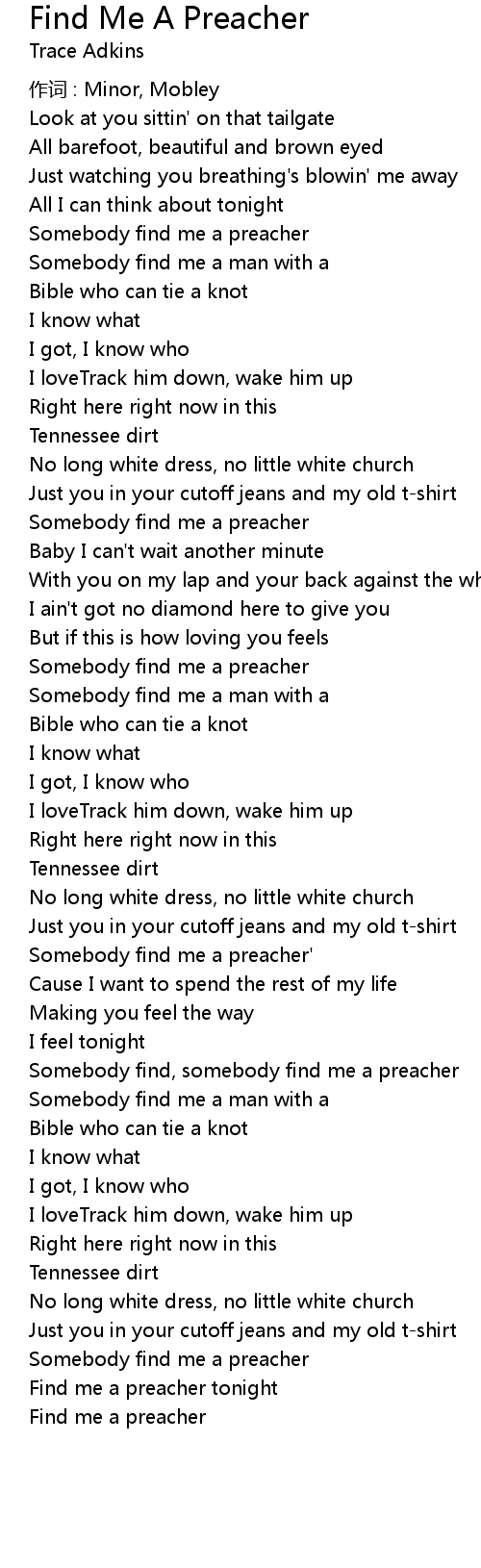 | Song | Find Me A Preacher |