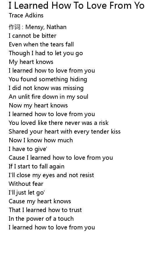 | I learned how to love from you | |