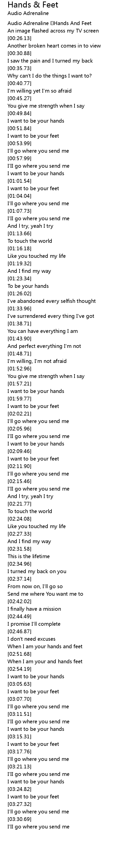 | [00:02.01] | Audio Adrenaline �Hands And Feet |