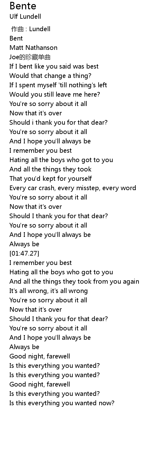 | [00:26.33] | If I bent like you said was best |