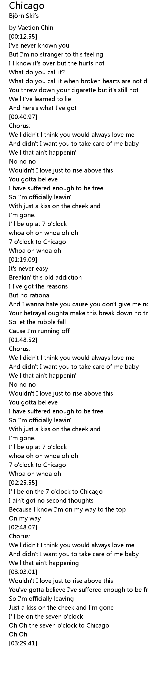 Oh Oh the seven o'clock to Chicago |