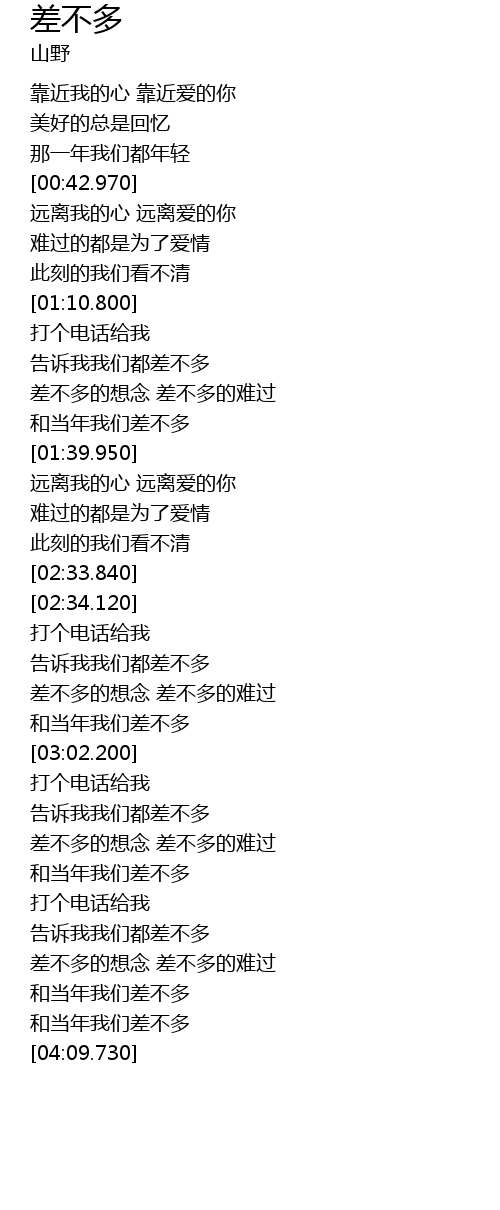 | [03:44.920] | cha bu duo de xiang nian cha bu duo de nan guo |
