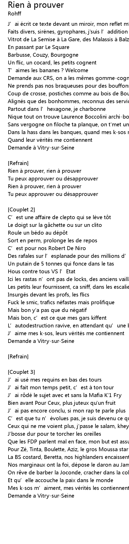 | J’aime mes k-sos, leurs vérités me contiennent | |