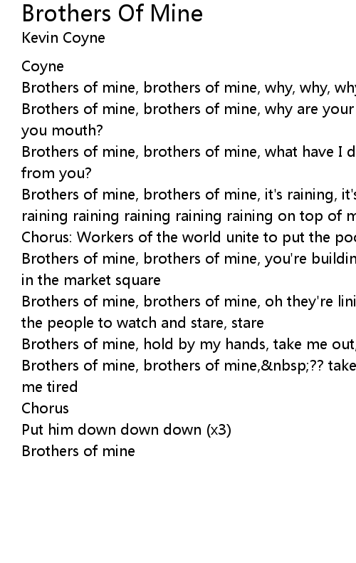 Brothers of mine, brothers of mine, ?? take away my heart and soul, you got me tired |