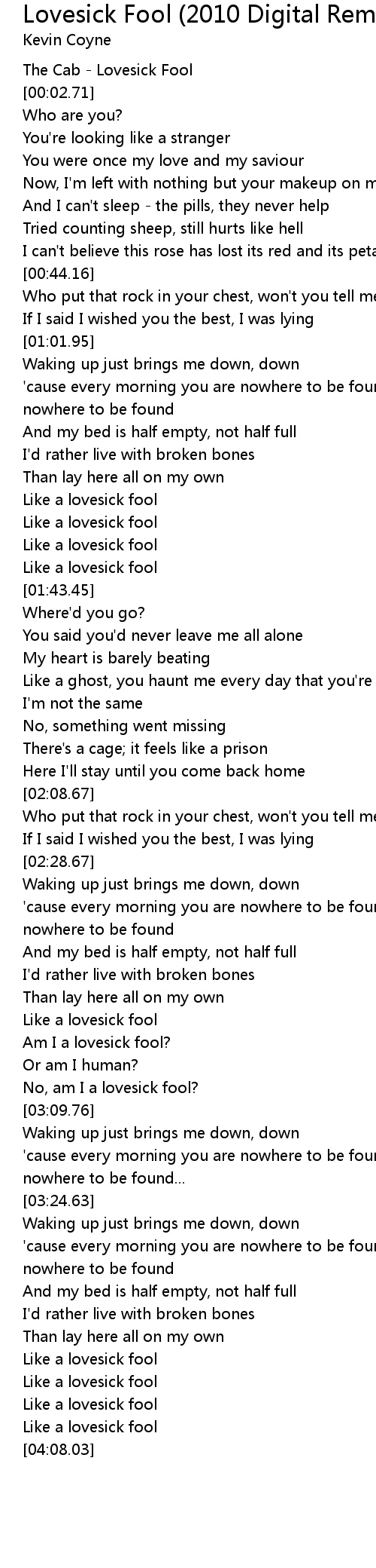 The Cab - Lovesick Fool |