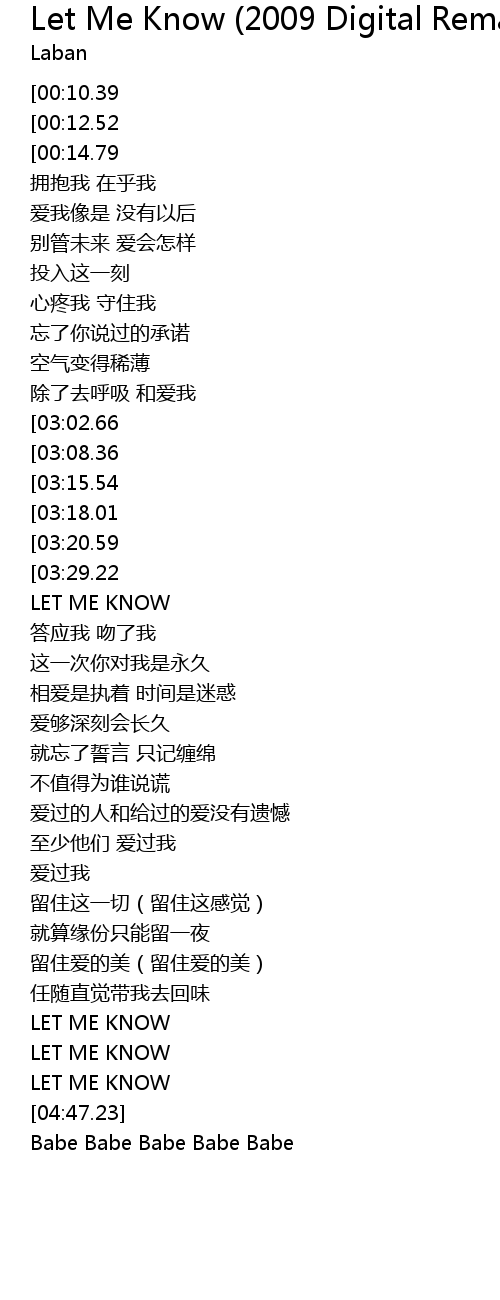 | [00:25.56][00:10.39] | LET ME KNOW |