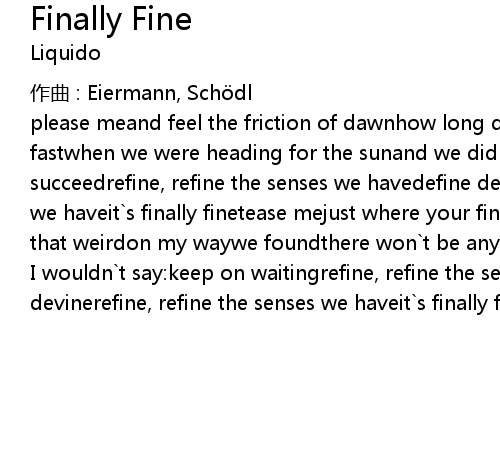 | I wouldn t say: keep on waitingrefine, refine the senses we havedefine devinerefine, refine the senses we haveit s finally fine |