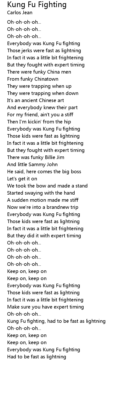 | [02:36.500] | Kung Fu fighting, had to be fast as lightning |