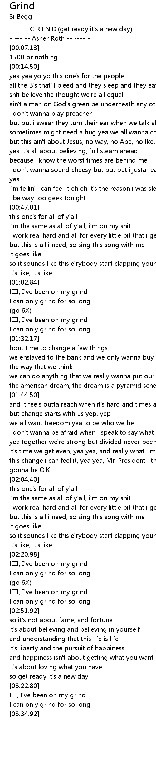 --- --- G.R.I.N.D.(get ready it's a new day) --- --- |