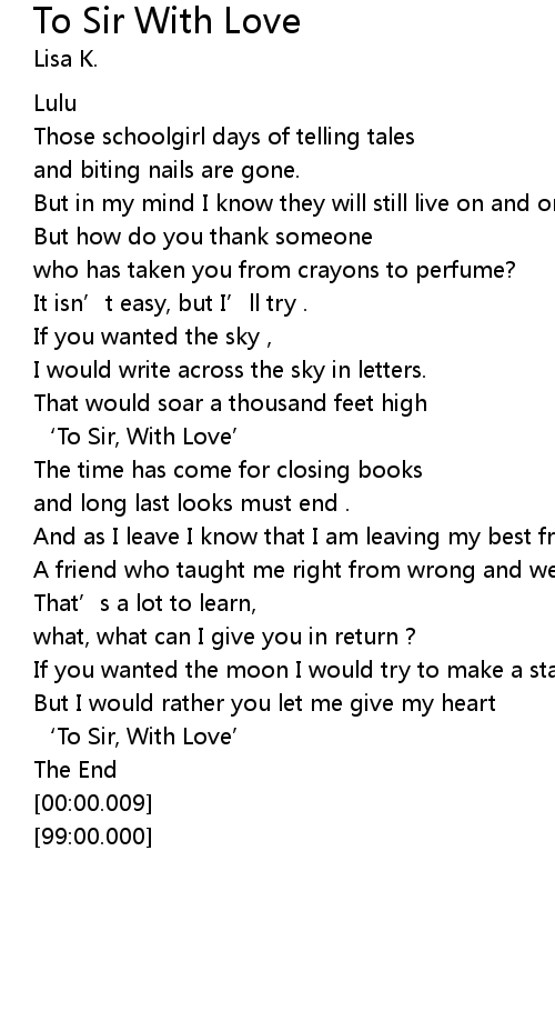 | [00:10.19] | Those schoolgirl days of telling tales |