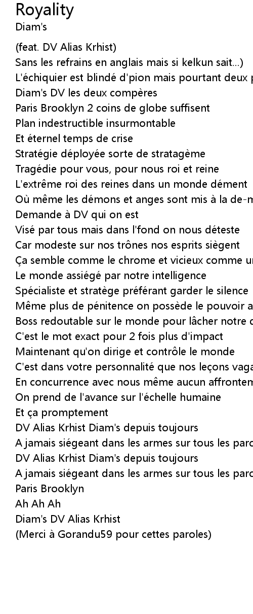 | DV Alias Krhist Diam's depuis toujours | |