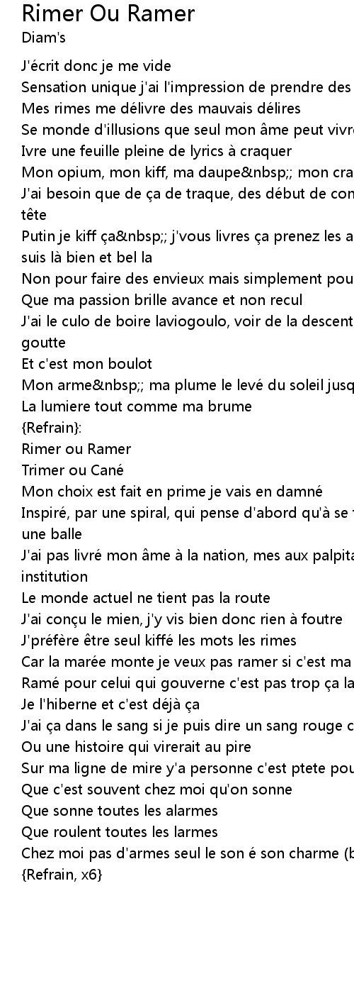 | Ivre une feuille pleine de lyrics a craquer | |