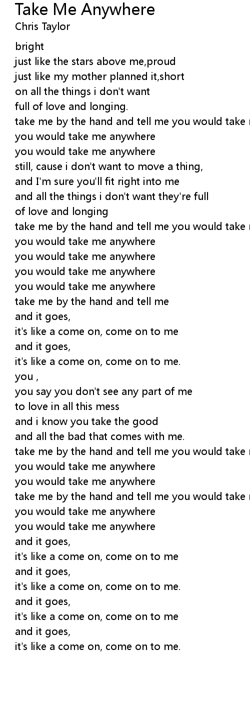 take me by the hand and tell me you would take me anywhere |