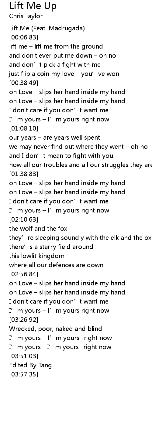 | [00:04.86] | Lift Me (Feat. Madrugada) |