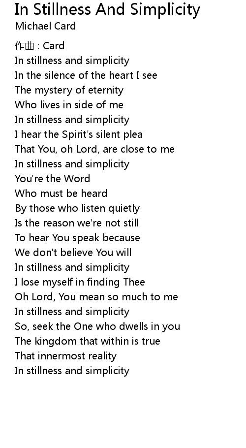 | Song | In Stillness And Simplicity |