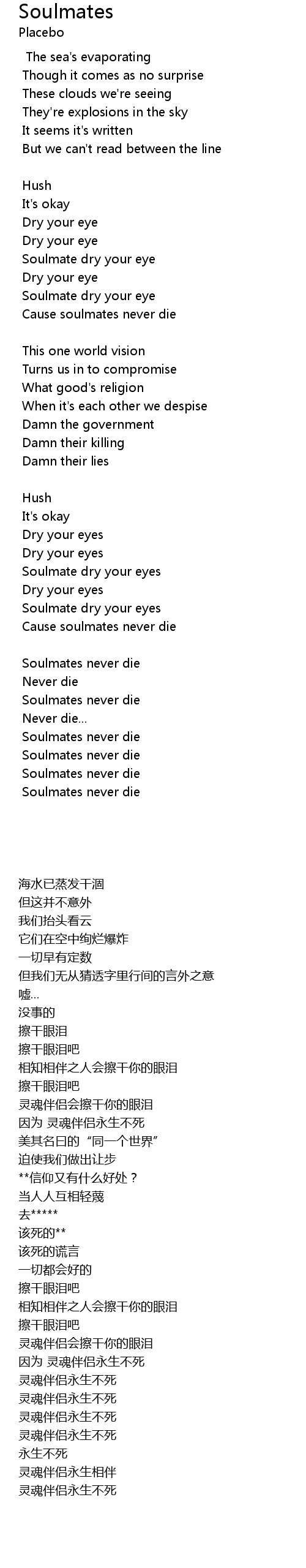 Soulmate dry your eyes |