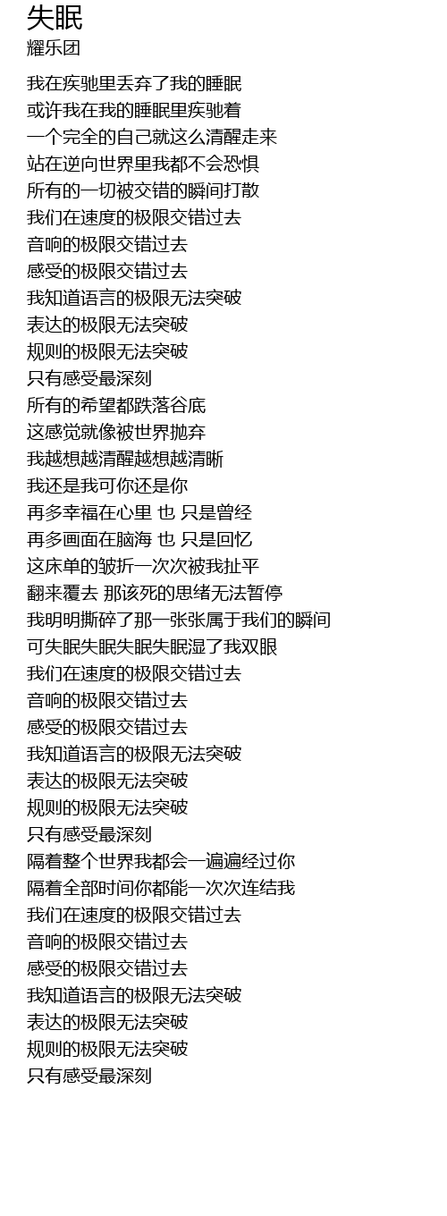 | [00:30.51] | 我在疾驰里丢弃了我的睡眠 |