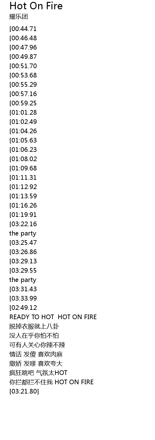 | [03:08.17] | READY TO HOT HOT ON FIRE |