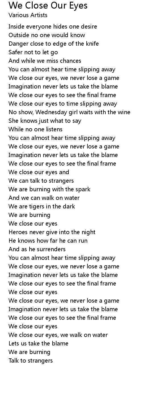 We close our eyes, we never lose a game |