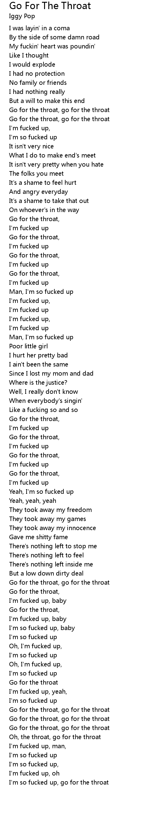 I'm so fucked up, go for the throat |