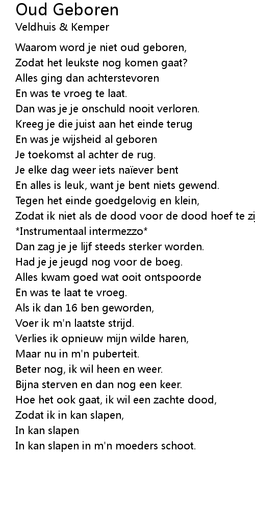 | Song | Oud Geboren |