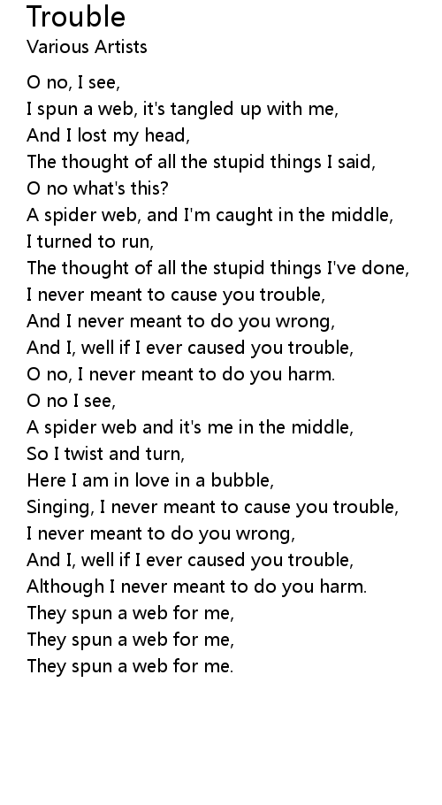 I never meant to cause you trouble, |